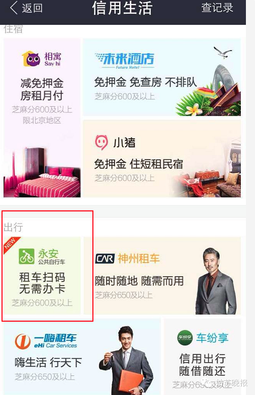 咱們總會有這種體驗 ↓↓↓ 不到一站的距離,可是走起來又好遠。就算坐公交做地鐵,還要折回去才到目的地。 這時候,路邊的綠色自行車就得瑟的看著你,“來找我啊來找我??!” 可是一摸口袋,木有卡! 呵呵噠,從今天起,這些得瑟的綠色自行車請收起你們嘲笑的嘴臉,就算蘇州人沒辦自行車卡,或者沒帶卡,也可以想騎就騎啦~ 只需要一個條件: 芝麻信用卡超過600分 芝麻信用分,咱們辦公室平時幾乎不用支付寶,信用分都有671! 最近,公共自行車租車點的鎖車樁上多了一個二維碼,上面還有租車點的名稱、編號和鎖車樁的編號。 使用方法在此: 1、打開支付寶app,在右下角點擊“芝麻信用分” 2、點擊右下角的信用生活 3、在“信用生活”里找到“永安公共自行車” 4、然后根據(jù)提示綁定支付寶賬戶就可以掃碼租車啦 掃碼成功后鎖車樁會語音報號,確認后也就借車成功了。 還車不用掃碼,只要鎖車樁提示還車成功就可以。 這個真的可以有!相當方便,有時候忘記帶卡,或者壓根兒就沒有卡的蘇州小伙伴,你們的交通工具就在你們面前。 目前已開通50個站臺 芝麻信用分掃碼租車還在試點階段, 古城區(qū)地鐵1號線、2號線沿線以及觀前地區(qū)的50個站點都可以。 “芝麻信用分”在600分以上的市民均可以實現(xiàn) 免保證金租車,半小時內(nèi)免費,超過半小時按0.5元/30分鐘計算,以此類推。 如果在借車過程中出現(xiàn)借車或還車不成功,也不要慌,除了可以撥打租車頁面的400電話,還可以撥打蘇州公共自行車的服務(wù)熱線。 哎呦不錯哦 這個周末出行 趕緊用起來吧~