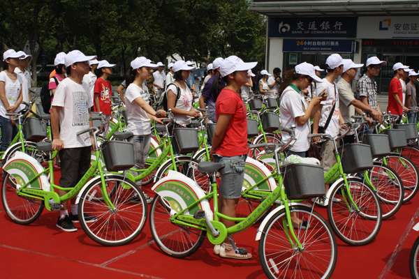 2010年8月30日,在蘇州金逸電影院廣場(chǎng)舉行了啟動(dòng)儀式。廣場(chǎng)上集中停放著60輛嶄新的“綠色”公共自行車(chē),在正式啟動(dòng)之后,志愿者們做了首次體驗(yàn),紛紛騎上車(chē),將車(chē)停放回各個(gè)停車(chē)點(diǎn)。首批投入200輛自行車(chē),在主干道人民路沿線設(shè)11個(gè)站點(diǎn)。市民和游客分別繳納200元、300元押金即可辦理租車(chē)卡,在任一站點(diǎn)可刷卡租車(chē),通借通還。市民卡第一小時(shí)免費(fèi),之后每小時(shí)1元。每輛車(chē)使用者都有2萬(wàn)元的意外傷害保險(xiǎn)。年內(nèi),蘇州還將建成第二批站點(diǎn),形成覆蓋居民區(qū)、公交站、商業(yè)街、酒店賓館、旅游景點(diǎn)的公共自行車(chē)網(wǎng)絡(luò)。