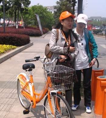 4月25日常熟公共自行車試運營,常熟便民公共自行車服務(wù)中心的工作人員向市民介紹如何辦理公共自行車借車卡,并熱情向市民解答公共自行車的相關(guān)疑問,并有市民在街頭試騎公共自行車。