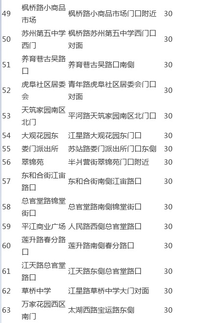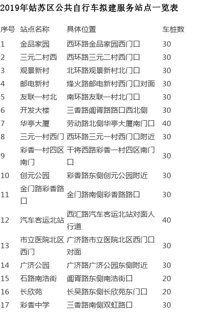 今天,蘇州市城市管理局官網(wǎng)發(fā)布《2019年姑蘇區(qū)公共自行車擬建服務(wù)站點(diǎn)公示》。為不斷完善姑蘇區(qū)公共自行車網(wǎng)點(diǎn)布設(shè),按照《蘇州市公共自行車系統(tǒng)專項(xiàng)規(guī)劃》方案并結(jié)合市民意見,經(jīng)前期踏勘,擬定2019年新建公共自行車服務(wù)站點(diǎn)70個(gè),計(jì)劃投放公共自行車2500輛,站點(diǎn)建設(shè)將分期分片組織實(shí)施。